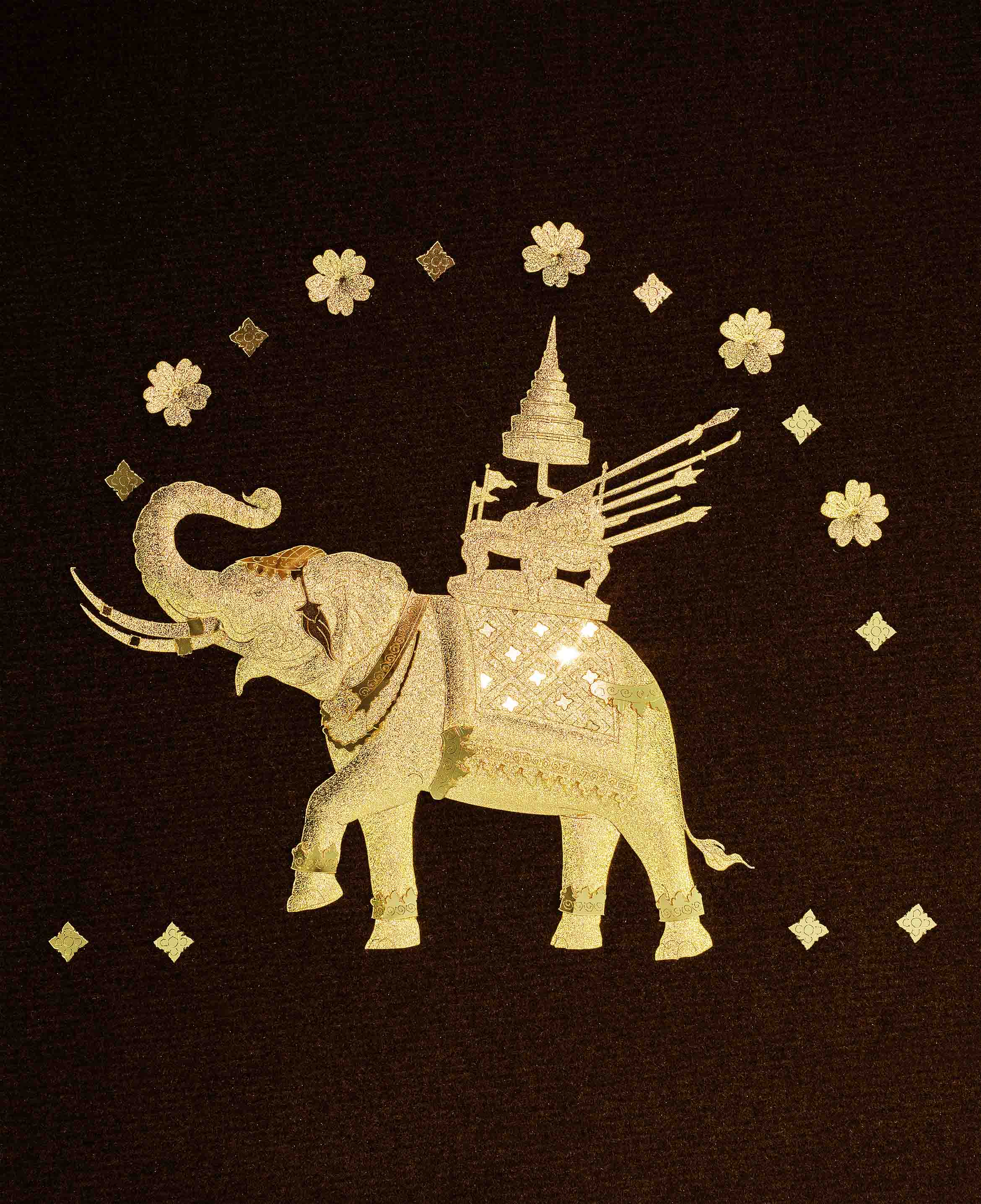 งานหัตถศิลป์ทองคำ "ช้างโปรยดอกไม้"