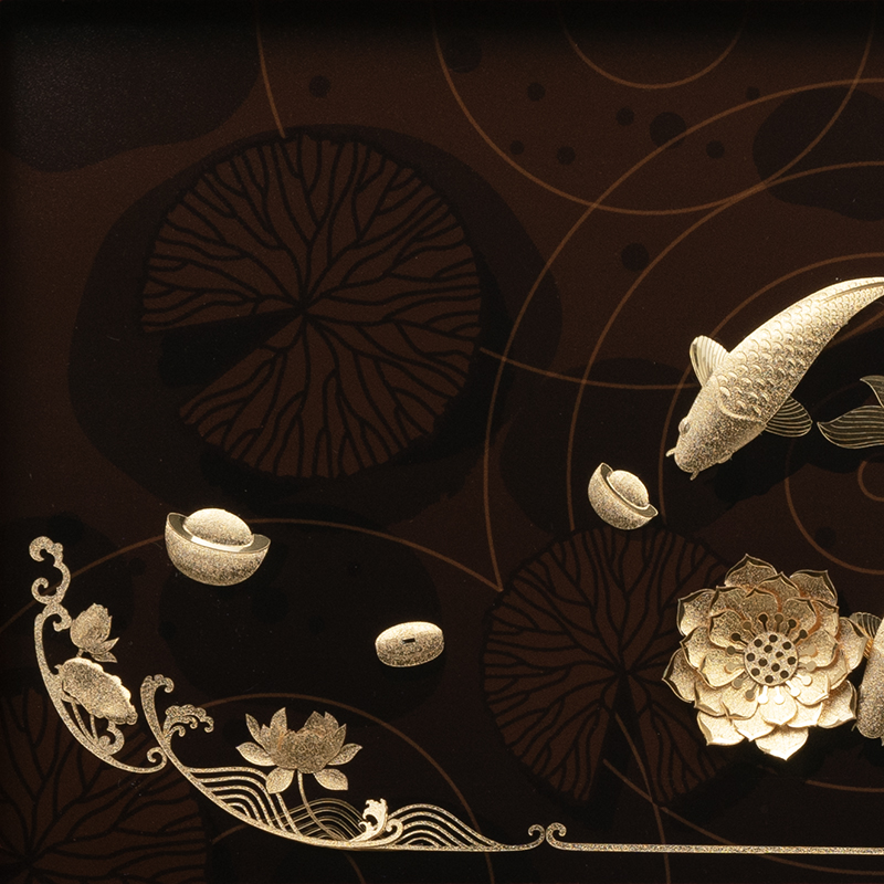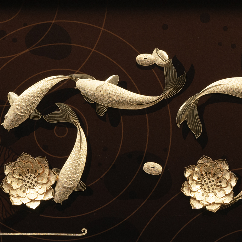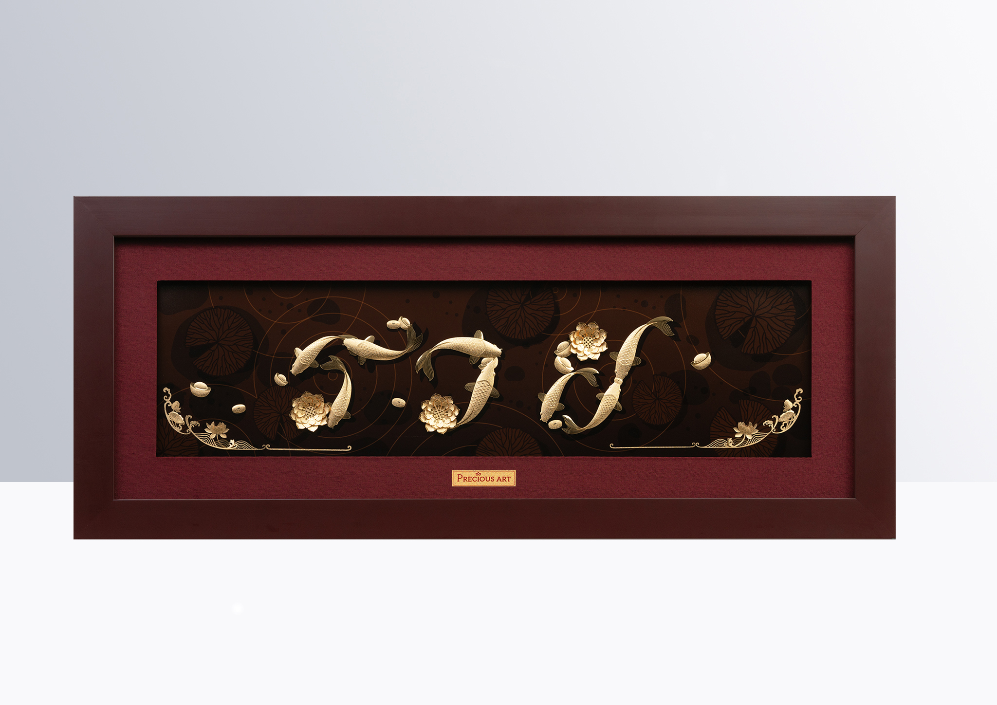 งานหัตถศิลป์ทองคำ ปลาคาร์ฟ อักษรมงคล รวย