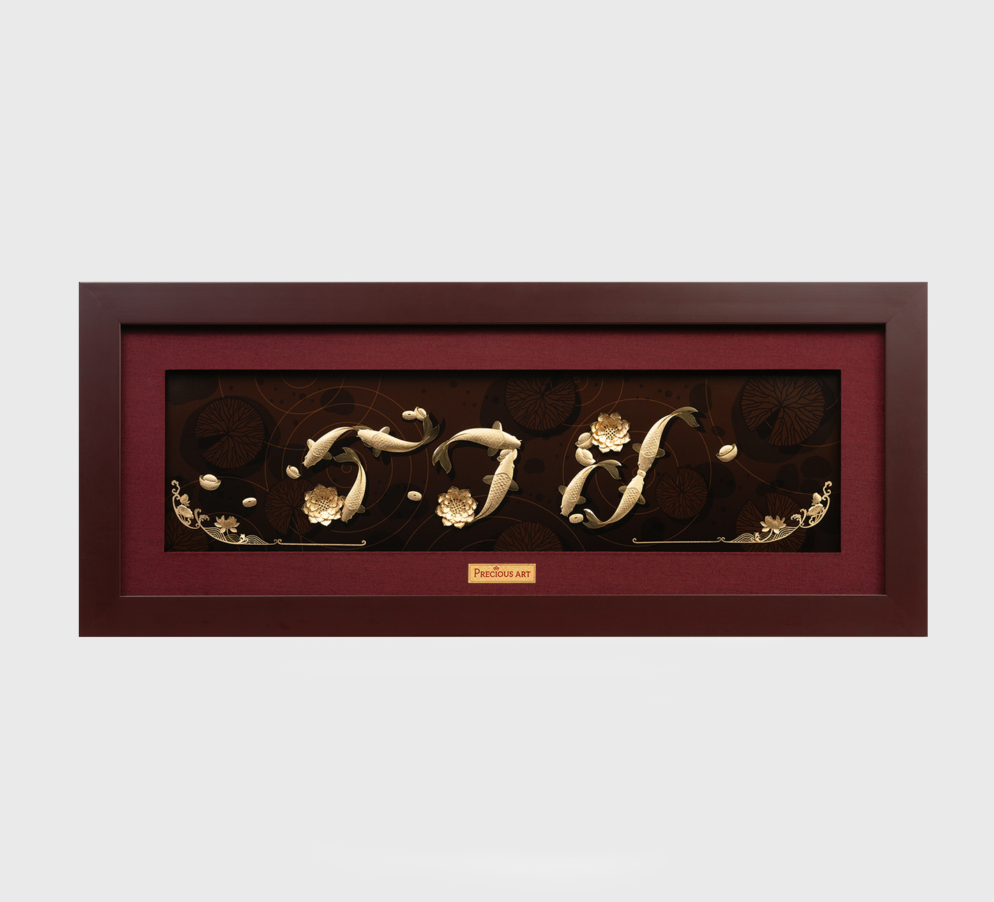 งานหัตถศิลป์ทองคำ ปลาคาร์ฟ อักษรมงคล รวย