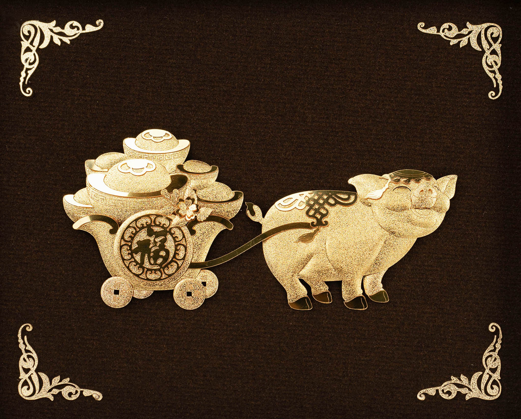 งานหัตถศิลป์ทองคำ "หมูลากถังเงิน"