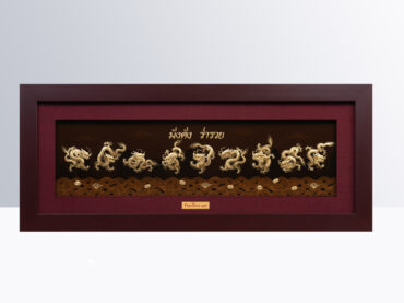 งานหัตถศิลป์ทองคำ มังกร 9 ตัว ฿9,000 รหัสสินค้า PR143 ขนาด 25×60 cm. สัญลักษณ์ของความมั่งคั่ง และความเจริญรุ่งเรืองการมีเงินทองล้นหลาม นำโชคลาภ รายละเอียดสินค้า ผลิตจากทองคำด้วยเทคนิคสูญญากาศเคลือบพ่นบนแผ่นฟิล์ม และสร้างสรรค์โดยช่างหัตถศิลป์ไทย เหมาะสำหรับมอบเป็นของขวัญมงคล ของแต่งบ้าน บริการเพิ่มเติม เพิ่มข้อความอวยพร ฟรี บริการผูกริบบิ้นที่ชิ้นงาน ฟรี บริการเพิ่มการ์ดอวยพร ฟรี Package กล่องผ้าไหม บริการจัดส่ง ฟรี (กรุงเทพ 1-2 วัน และต่างจังหวัด 1-3 วัน) การดูแลรักษาสินค้า โปรดเก็บรักษาสินค้าในที่ที่ห่างจากความร้อนและความชื้น การทำความสะอาดทำได้โดยใช้ผ้าเนื้อนุ่มเช็ดเบาๆ ไม่ควรใช้สารเคมีสัมผัสสินค้า เงื่อนไขและการรับประกัน เงื่อนไข : ขอสงวนสิทธิ์ในการไม่รับซื้อคืนและเปลี่ยนสินค้า การรับประกัน : 1 ปี จากวันที่ซื้อสินค้าครอบคลุมความเสียหายที่เกิดจาก กระบวนการผลิตของทางบริษัทฯ มังกร 9 ตัว […]